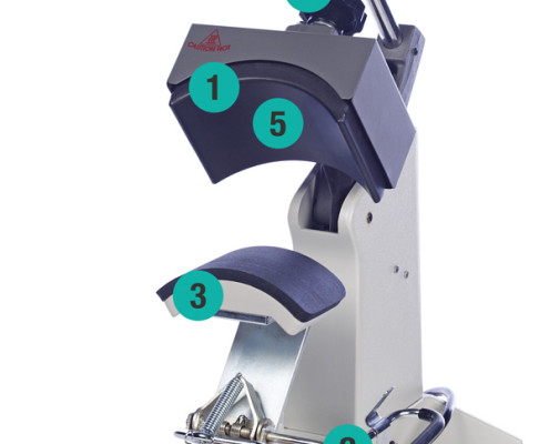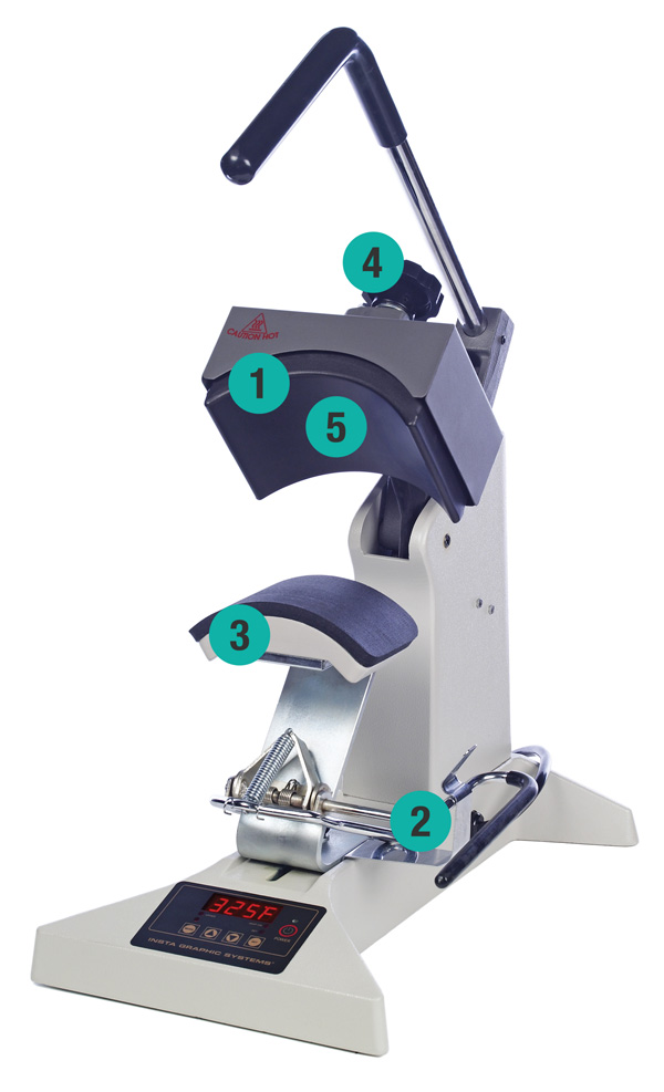 Los platos curvos del Modelo 418 están moldeados perfectamente para espejar las curvas de las gorras y están diseñados para la aplicación de transfers sobre gorras y viseras.