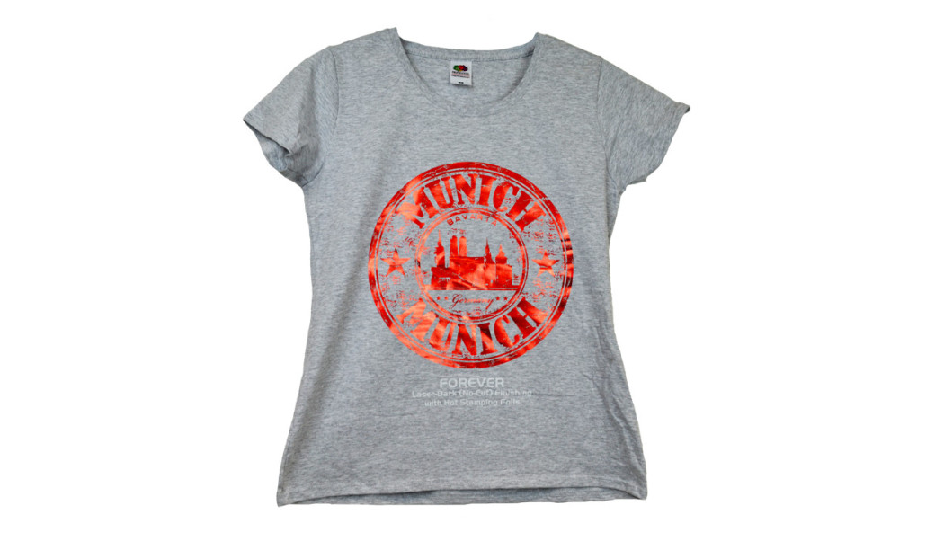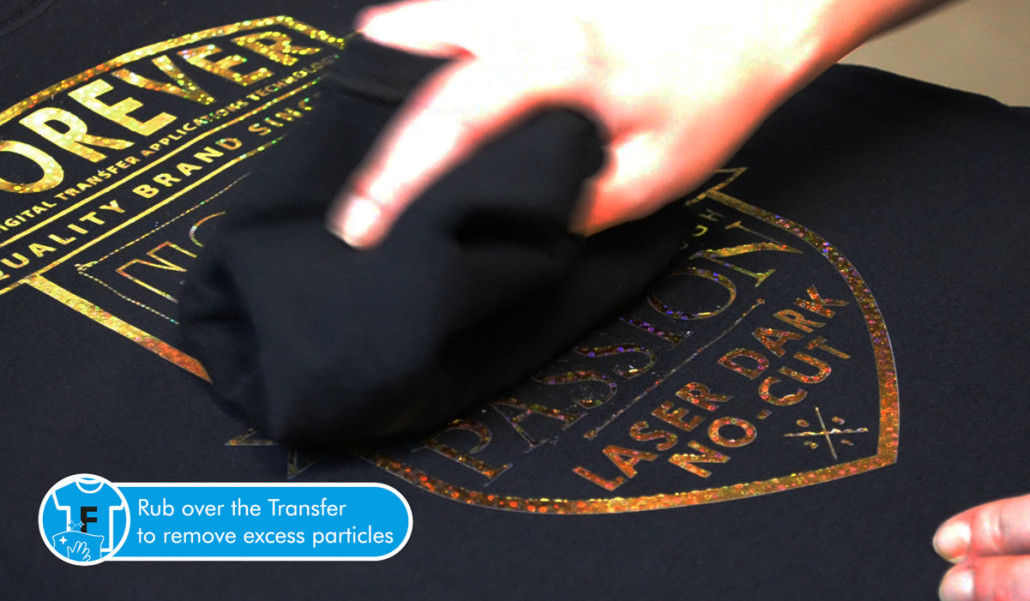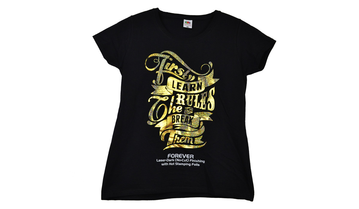Al transfer FOREVER Laser Dark (No-Cut) LowTemp puede dársele fácilmente un acabado Metalizado, con la ventaja de que se transfieren hasta los detalles más finos.